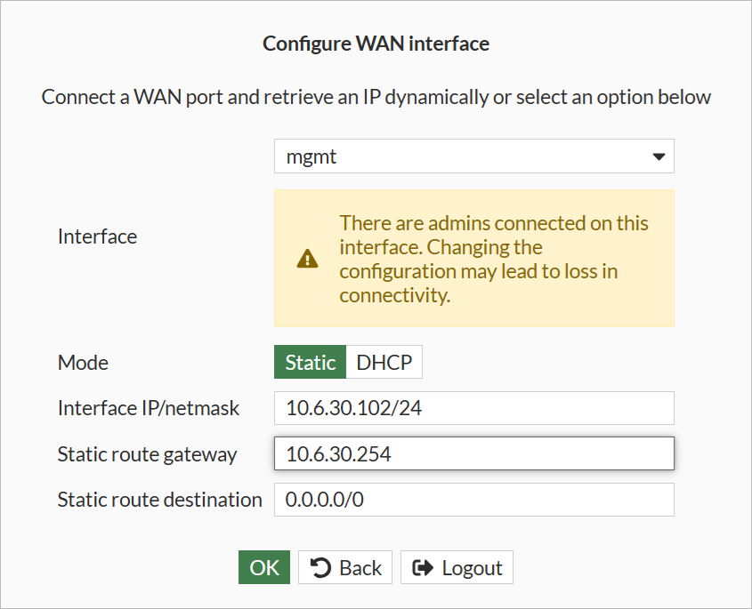 Select Configure WAN interface. The Configure WAN interface dialog box is displayed.