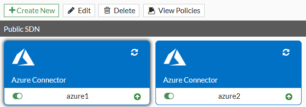 2. Click the Refresh icon in the upper right corner of each configured SDN connector. A green up arrow appears in the lower right corner, meaning that both SDN connectors are connected to the Azure cloud using different client IDs.