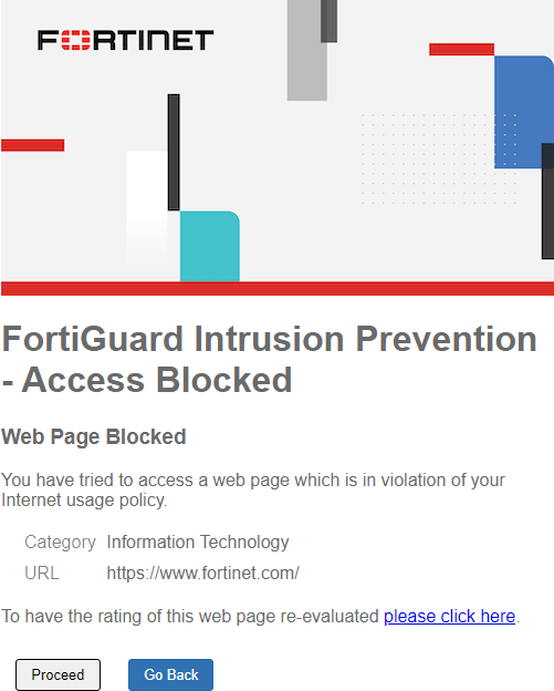 Go to a website that belongs to the blocked category, such as www.fortinet.com.