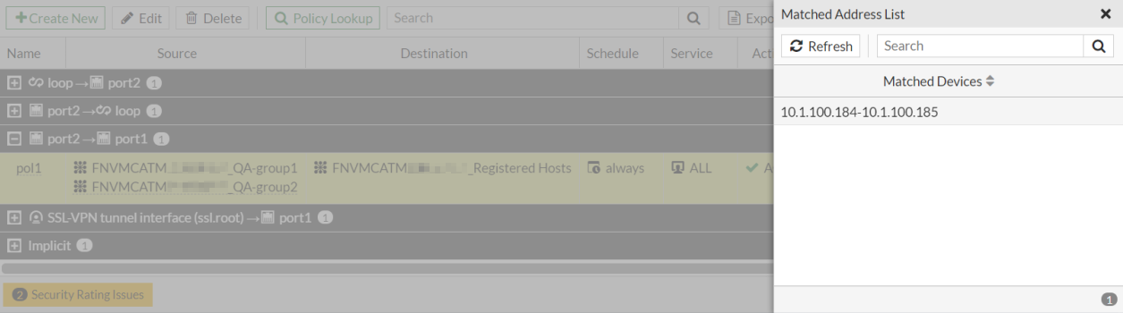 5. Hover over the address in the policy, then in the tooltip, click View Matched Addresses.