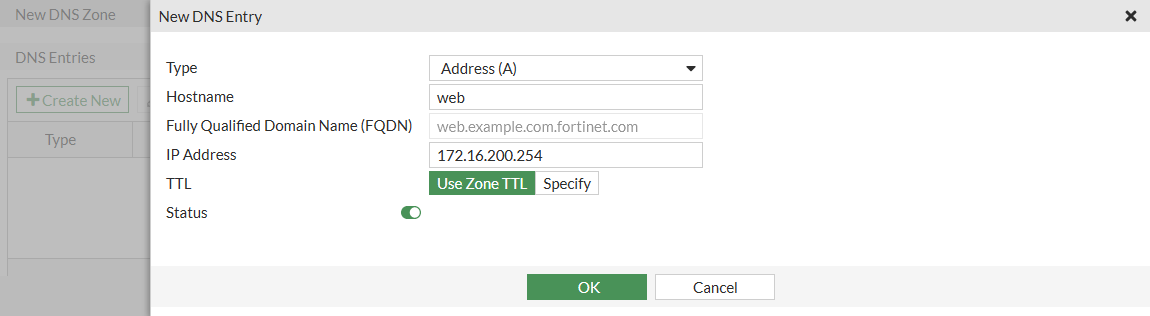 In the DNS Entries table, click Create New.