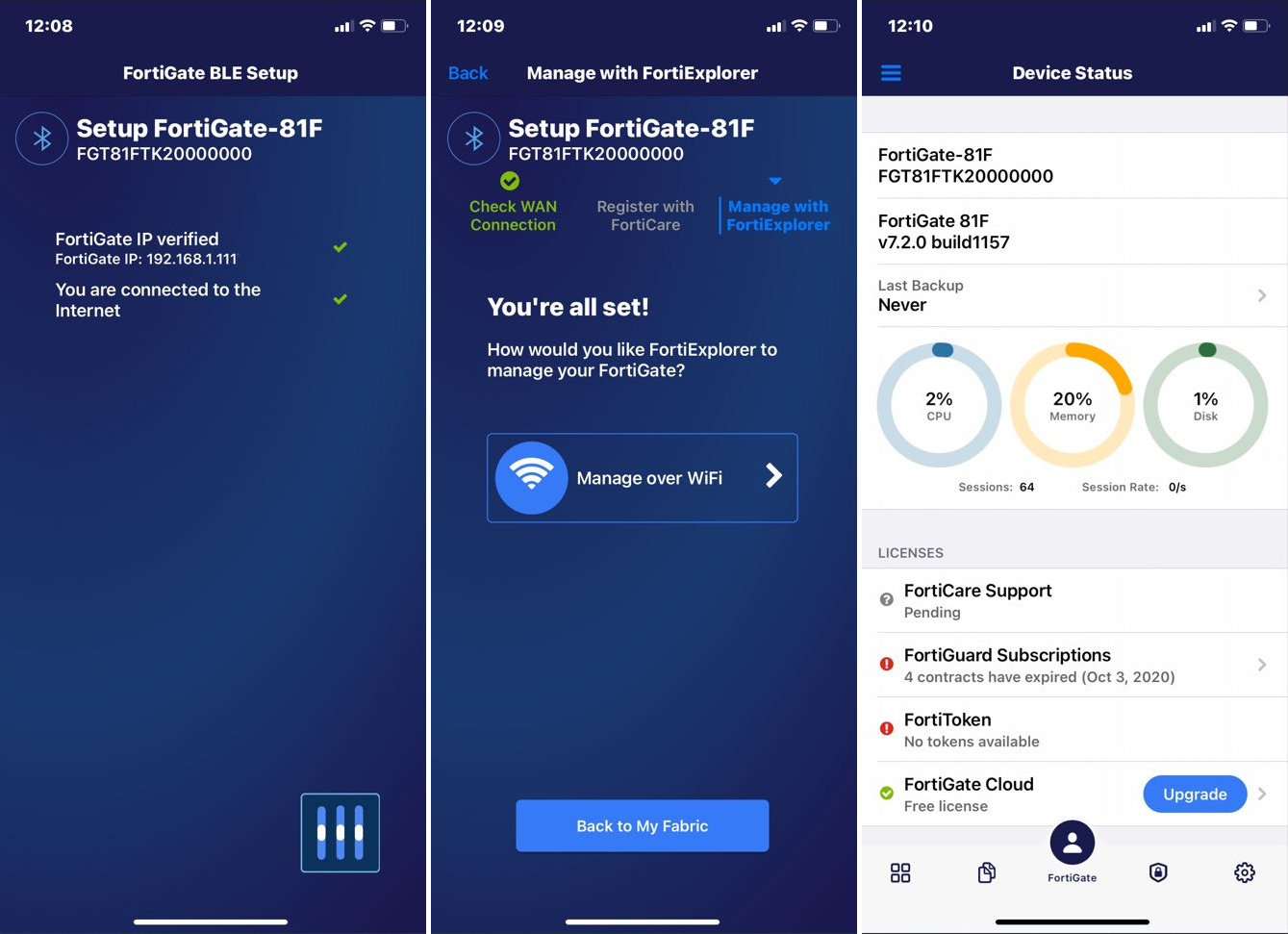 FortiGate 200F series and 80F series devices can be initially configured in FortiExplorer using Bluetooth Low Energy (BLE).