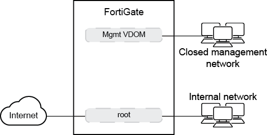 Only one management VDOM can exist at a time. It is strongly recommended that the management VDOM have Internet access otherwise management-related services, such as FortiGuard updates and queries, will not work. |