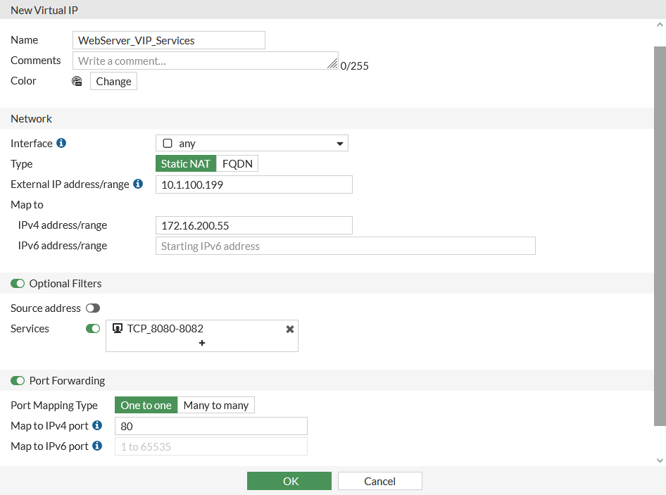 Set Mapped IP Address/Range to 172.16.200.55.