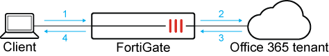 - The Microsoft Office 365 domain controller assesses this data and will allow or deny this access, then sends a reply to the FortiGate.