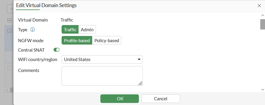 2. Select a VDOM and click Edit. The Edit Virtual Domain Settings pane opens.