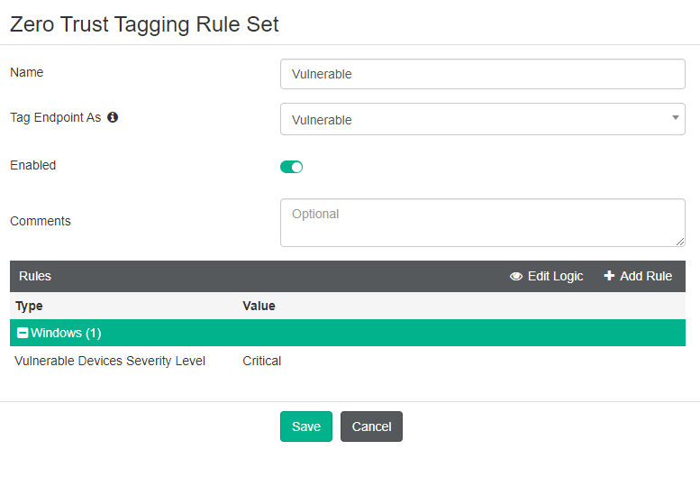 Enter.EMS uses this tag to dynamically group together endpoints that satisfy the rule, as well as any other rules that are configured to use this tag.