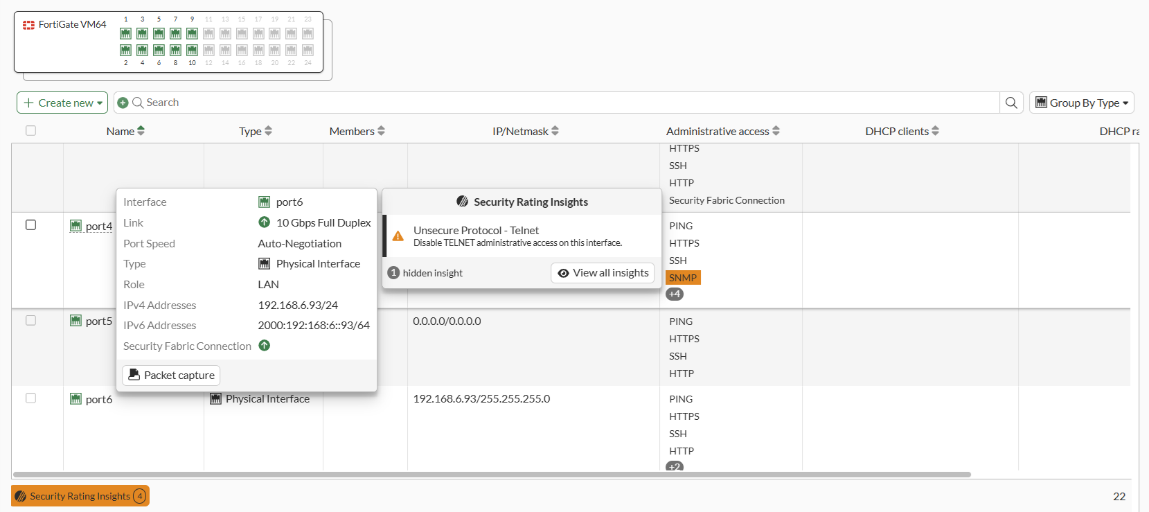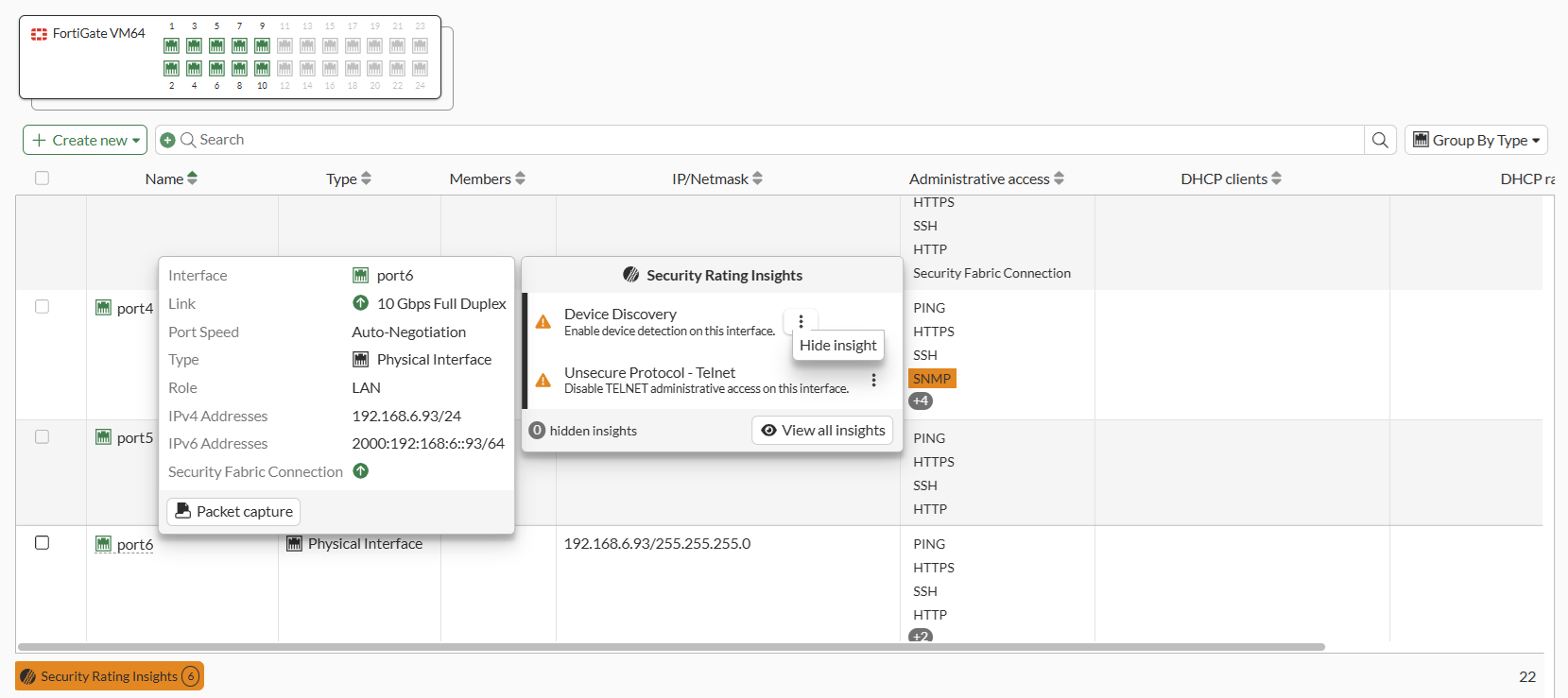 In the updated tooltip, the View all insights button will open the Security Rating page, where a special filter is pre-applied that shows all the insights (hidden or not) for the specific entry.