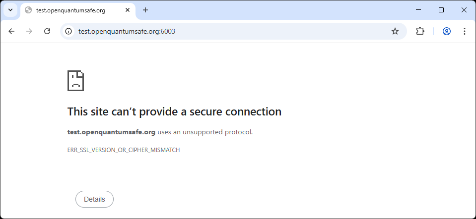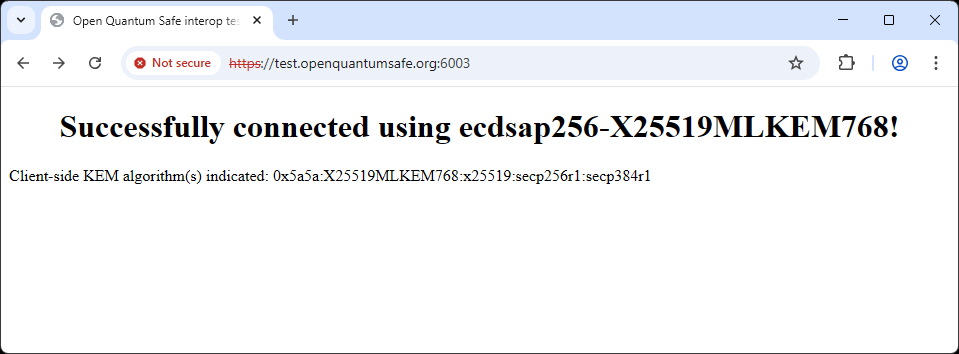 test.openquantumsafe.org:6003 supports X25519MLKEM768 as the key exchange algorithm.