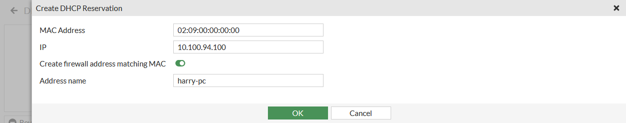 To create a DHCP reservation:
