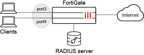 In this example, port3 and port4 are part of a hardware switch interface. The hardware switch acts as a virtual switch so that devices can connect directly to these ports and perform 802.1X authentication on the port.