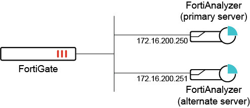 Make the primary FortiAnalyzer server go down. The FortiGate will automatically connect to the alternate FortiAnalyzer server.