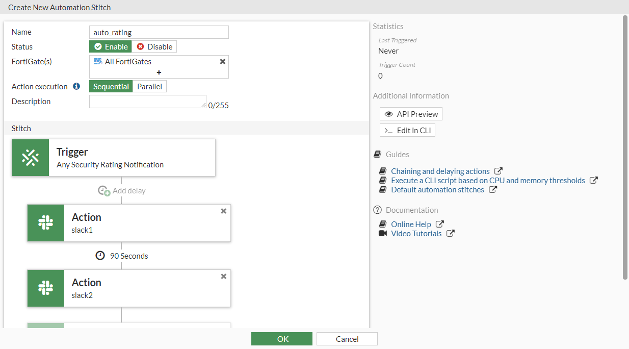 1. Go to Security Fabric > Automation and click Create New.