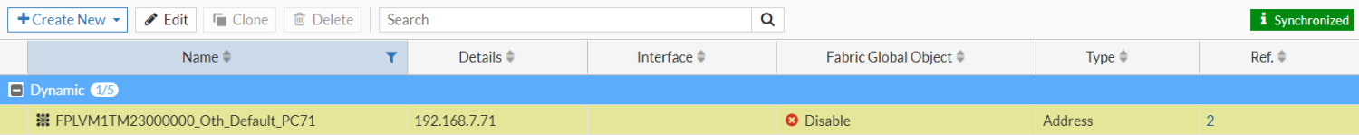 Go to Policy & Objects > Addresses to view the dynamic firewall address associated with the policy (FPLVM1TM23000000_Oth_Default_PC71).