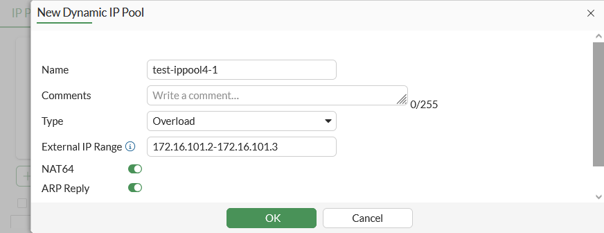 ippoolandippool6support NAT46 and NAT64 (when enabled, the IP pool should match a subnet). -
