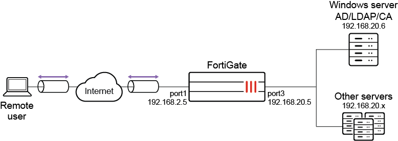 This method is more scalable because only one PKI user needs to be created on the FortiGate. Remote users connect with their unique user certificate that are matched against users in the LDAP server.