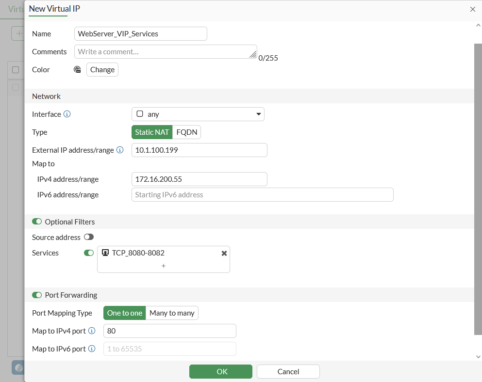 Set Mapped IP Address/Range to 172.16.200.55.