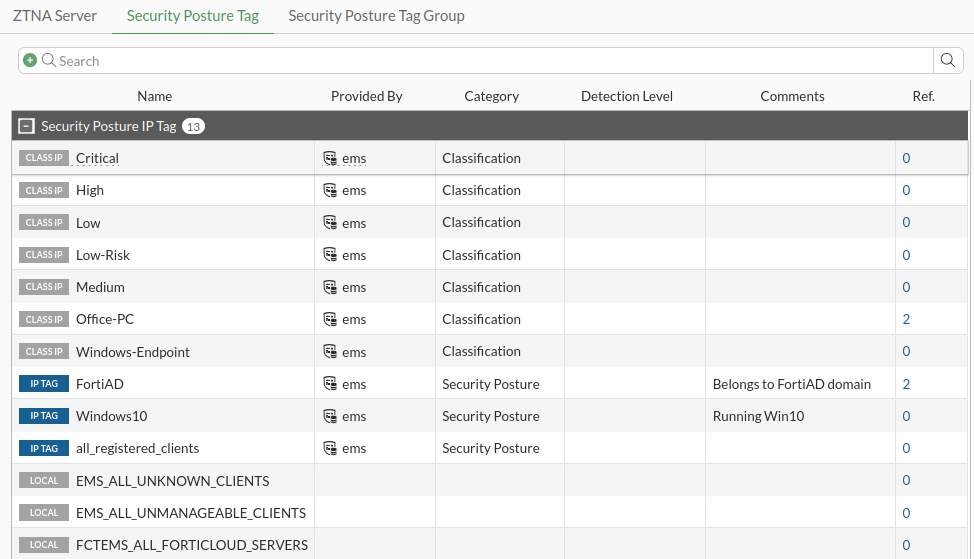 On the FortiGate, go to Policy & Objects > ZTNA. Switch to the Security Posture Tags tab.