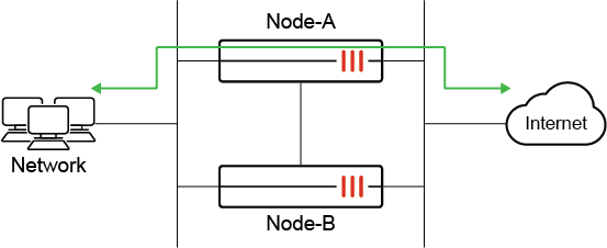 Administrators can manually trigger failover to make Node-B the new primary when ready. This can be done by resetting the HA uptime or changing device priorities, whichever method is desired. Traffic now passes through Node-B.