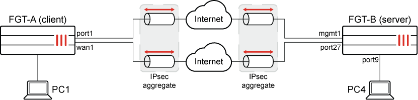 config vpn ipsec phase1-interface edit "server1" set type dynamic set interface "mgmt1" set peertype any set net-device disable set aggregate-member enable set proposal aes128-sha256 aes256-sha256 aes128-sha1 aes256-sha1 set dpd on-idle set psksecret *********** set dpd-retryinterval 60 next edit "server2" set type dynamic set interface "port27" set peertype any set net-device disable set aggregate-member enable set proposal aes128-sha256 aes256-sha256 aes128-sha1 aes256-sha1 set dpd on-idle set psksecret ********** set dpd-retryinterval 60 next end config vpn ipsec phase2-interface edit "server1" set phase1name "server1" set proposal aes128-sha1 aes256-sha1 aes128-sha256 aes256-sha256 aes128gcm aes256gcm chacha20poly1305 next edit "server2" set phase1name "server2" set proposal aes128-sha1 aes256-sha1 aes128-sha256 aes256-sha256 aes128gcm aes256gcm chacha20poly1305 next end -