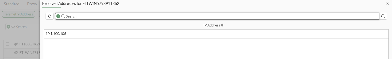 Click to view the resolved IP address for the FortiTelemetry agent.