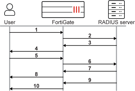 The FortiGate sends the Access-Request message to the RADIUS server.
