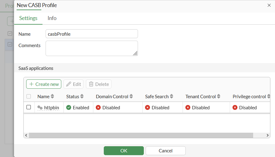 Click OK to save the CASB profile.