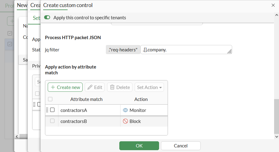 config casb profile edit "casbProfile" config saas-application edit "httpbin" config custom-control edit "httpbin-partners" config attribute-filter edit 1 set attribute-match "httpbin-contractorsA" set action monitor next edit 2 set attribute-match "httpbin-contractorsB" set action block next end next end next end next end