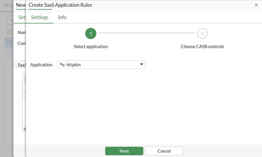 To configure a CASB SaaS application in the GUI: