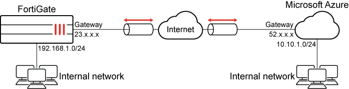 This example shows how to configure a site-to-site IPsec VPN tunnel to Microsoft Azure. It shows how to configure a tunnel between each site, avoiding overlapping subnets, so that a secure tunnel can be established.