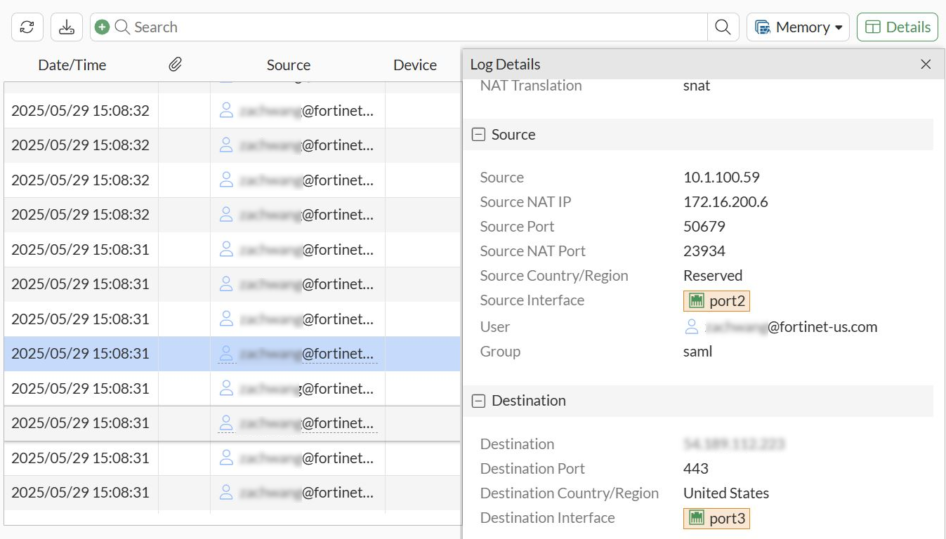 Upon successful configuration, users and groups are provisioned on FortiGate. This setup can leverage SAML to provide access to authenticated users when using explicit web proxy policy.