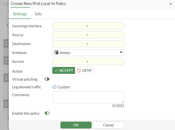 Go to the IPv6 Local-In Policy tab.
