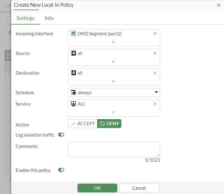 Configure the local-in policy: