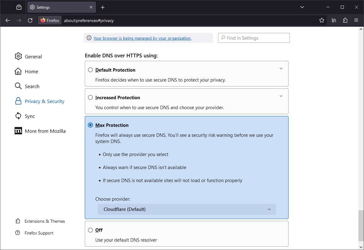 In a browser, enable DNS over HTTPS. For example, in Firefox go to Settings > Privacy & Security and under DNS over HTTPS enable Max Protection.