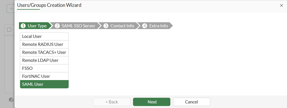 3. Select SAML User, then click Next.
