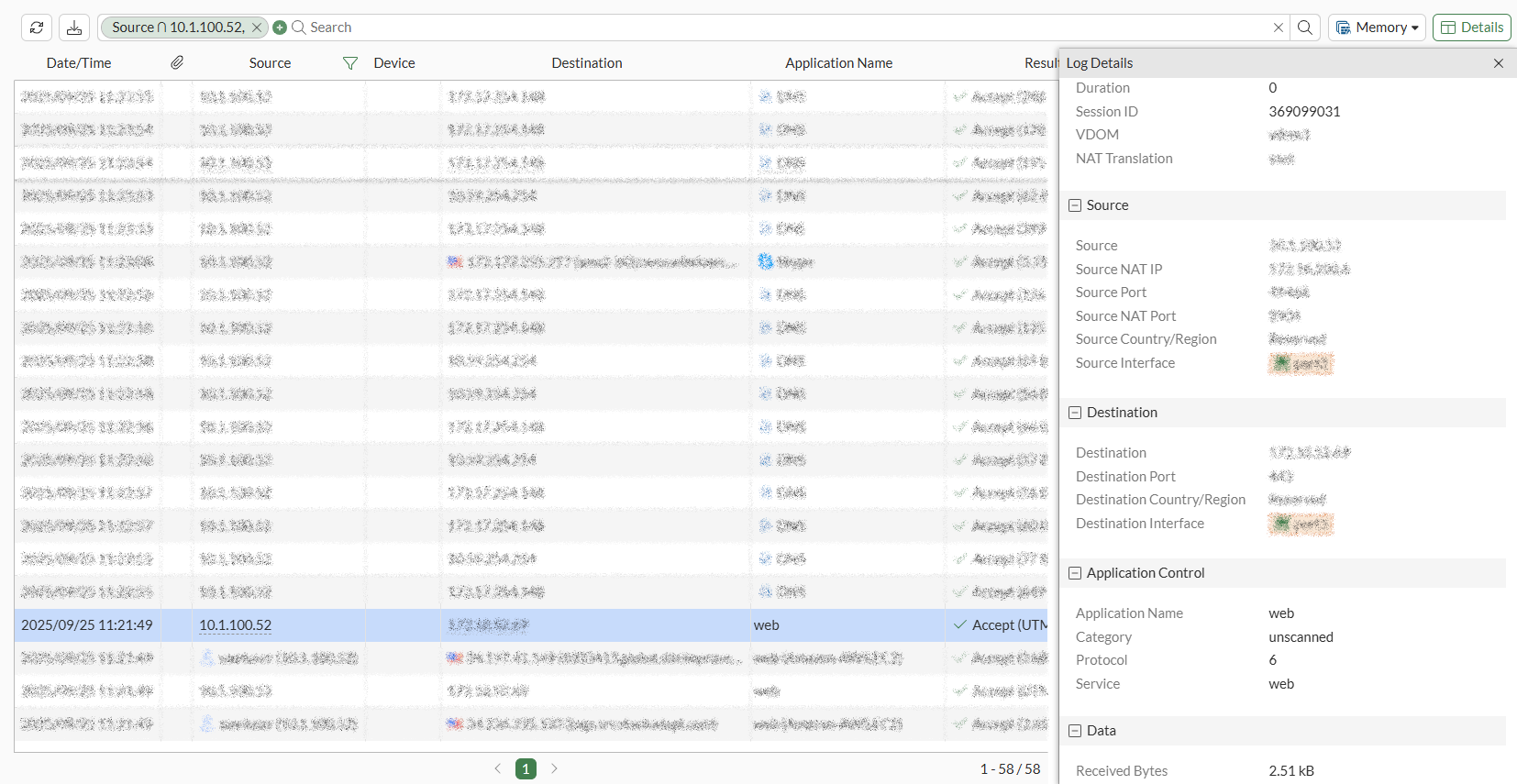 View the traffic logs and note the unique session IDs for the websites visited: