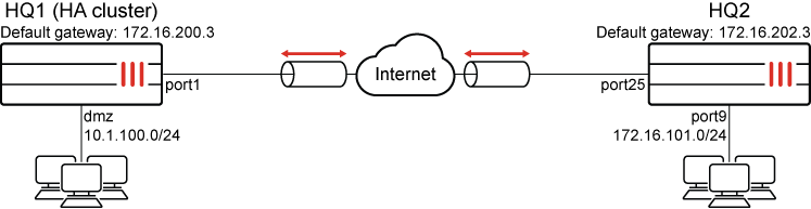 For this example, set up HA as described in the HA topics. When setting up HA, enable the following options to ensure IPsec VPN traffic is not interrupted during an HA failover:
