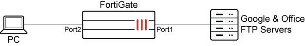internet-serviceisenabled, and the internet service group namedGoogle_Groupis selected to allow access to all Google services from the PC.config firewall policy edit 1 set name "PC to Google" set srcintf "port2" set dstintf "port1" set srcaddr "all" set internet-service enable set internet-service-group "Google_Group" set action accept set schedule "always" set fsso disable set nat enable next end