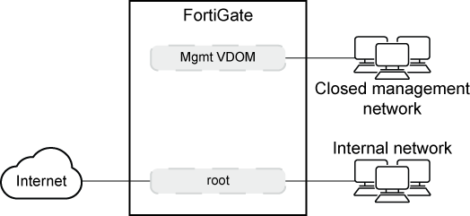 Only one management VDOM can exist at a time. It is strongly recommended that the management VDOM have Internet access otherwise management-related services, such as FortiGuard updates and queries, will not work. |