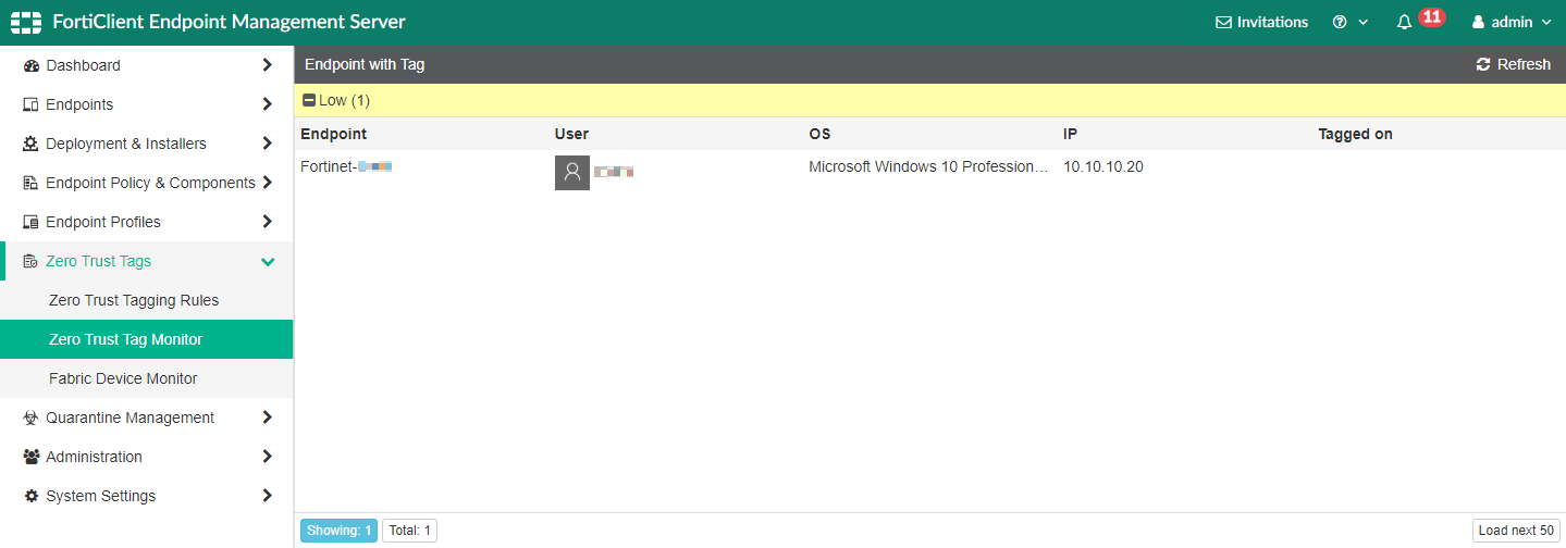To verify zero-trust tags in FortiClient EMS: