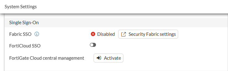Under Single Sign-On and beside FortiGate Cloud central management, click Activate.