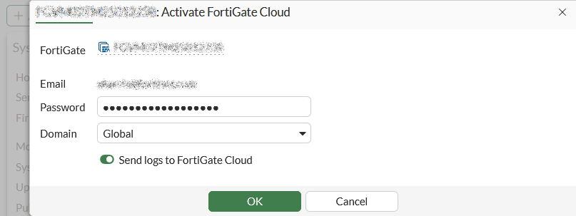 If the FortiGate is not registered, activating FortiGate Cloud will force you to register with FortiCare.
