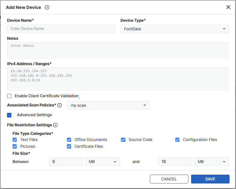 Configure any advanced settings as needed to narrow down the file types and size to scan.