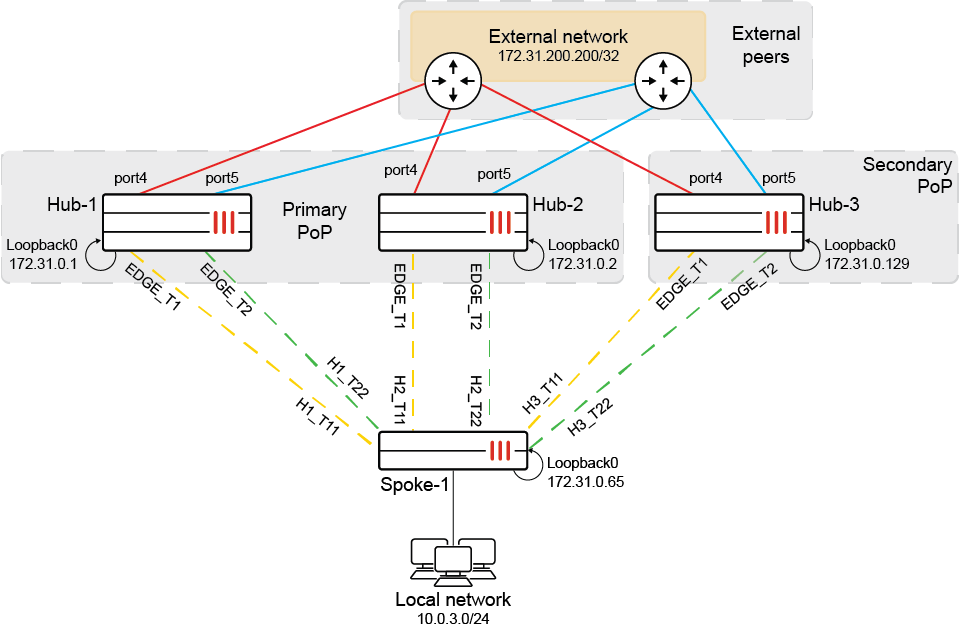 The secondary PoP has one hub (Hub-3).