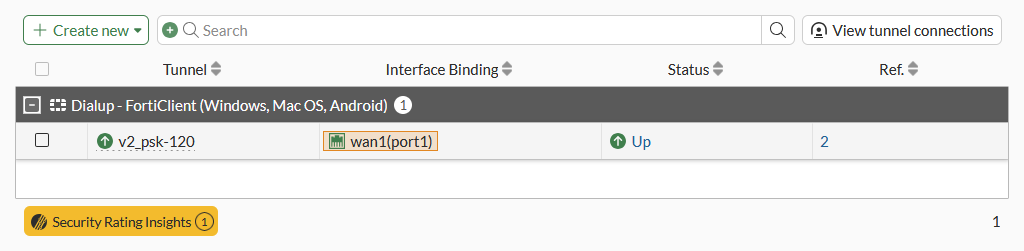 One or more user groups for user authentication can be configured under a single IPsec VPN tunnel. See Using single or multiple user groups for user authentication for details.
