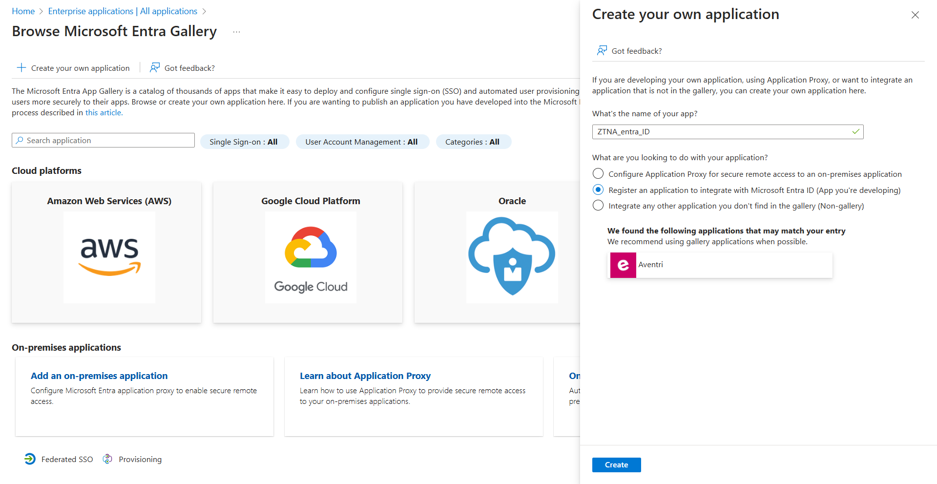 Click Create your own application, and select the Register an application to integrate with Microsoft Entra ID (App you're developing) option.