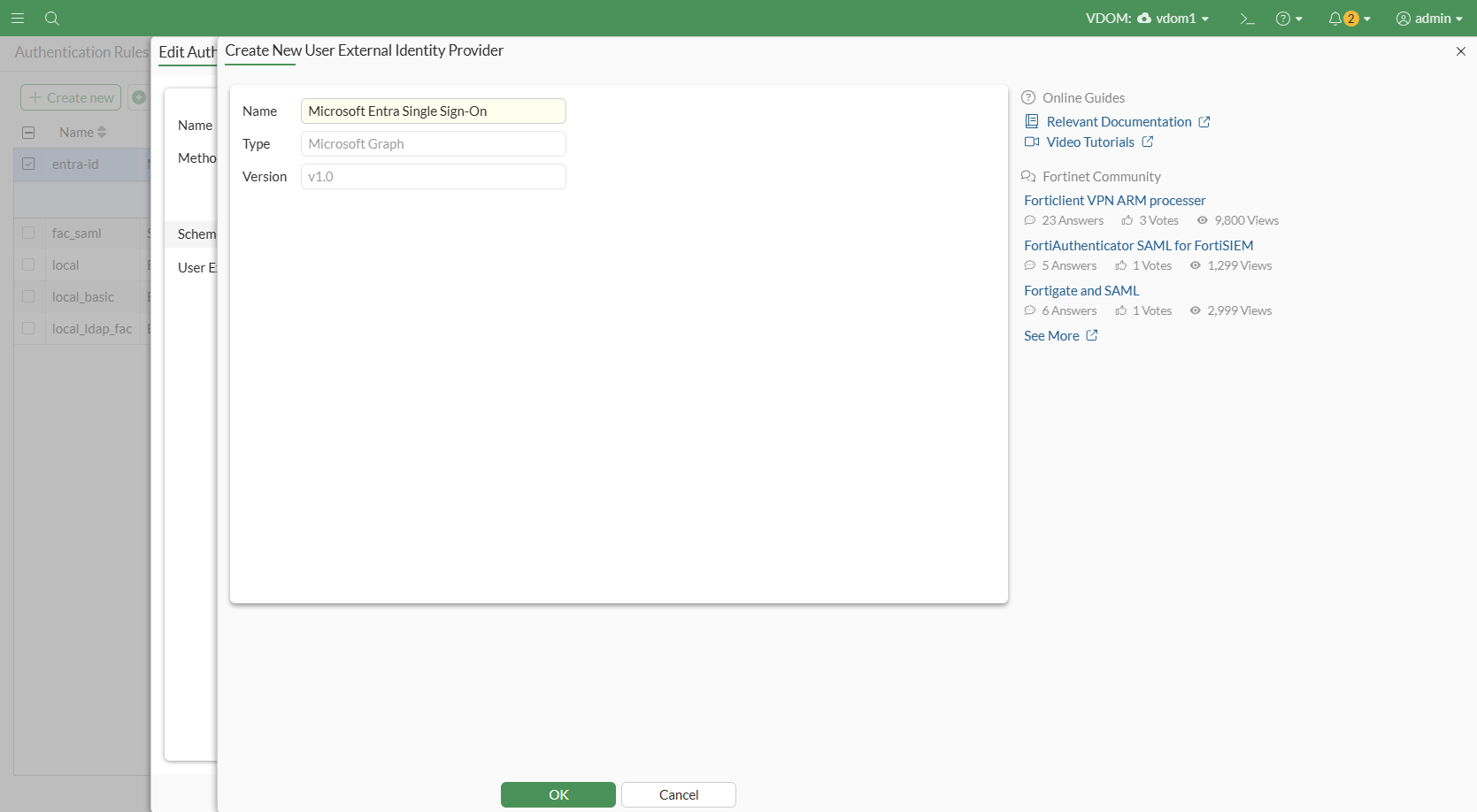 FortiGate ZTNA server configurations remain the same. EMS connectivity and ZTNA server configurations are not explained in this topic. The major difference in FortiGate configurations is in the authentication scheme, rule, and user group. Therefore, the configuration process starts with authentication scheme and rule.