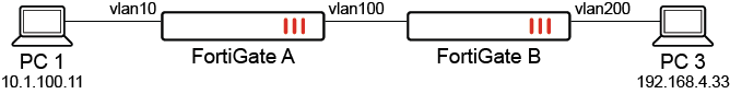 config firewall policy edit 4 set srcintf "vlan100" set dstintf "vlan200" set action accept set srcaddr "all" set dstaddr "all" set srcaddr6 "all" set dstaddr6 "all" set schedule "always" set service "ALL" set logtraffic all next end -