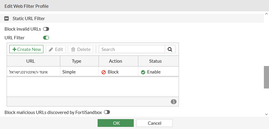 Configuring web filter profiles with Hebrew domain names