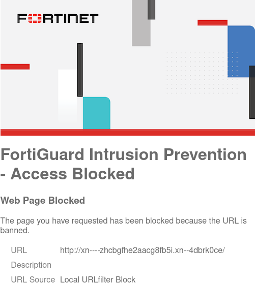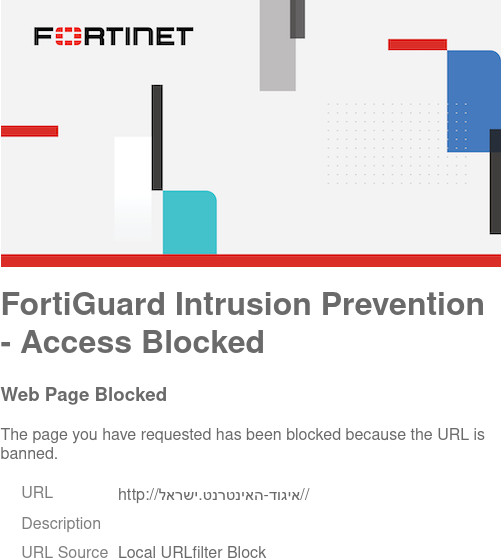 From a client, access the Hebrew URL over HTTPS. The website is blocked by the FortiGate.